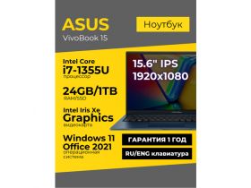 17.3 Ноутбук ASUS VivoBook 17X, IPS, Intel Core i7-1355U (4.70 ГГц), RAM 40 ГБ, SSD 1 ТБ, Intel Iris Xe Graphics G7, Windows Pro + Office 2021, Русская раскладка 4506092356