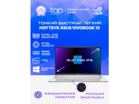 Ноутбук ASUS Vivobook 15X OLED Intel Core i5-1335U/DDR4 16GB/1Tb M.2 SSD /15.6 3К (2880 x 1620) OLED 120Hz/Windows 11 Pro/Indie Black/1,6Кг/Сканер отпечатка/Металлическая крышка/Русская раскладка и Подсветка клавиатуры 103106851390