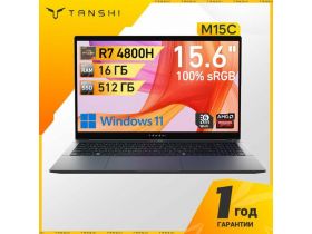 TANSHI M15C Ноутбук 15.6, AMD Ryzen 7 4800H, RAM 16 ГБ, SSD 512 ГБ, FHD IPS 100%sRGB, RAM и SSD с возможностью расширения, Window, Русская раскладка 103737402840