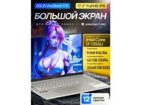 17.3 Ноутбук ASUS Vivobook 17 X1704ZA-AU343 1920x1080, Intel Core i5 1235U 1.3 ГГц, RAM 16 ГБ, DDR4, SSD 512 ГБ, Intel Iris Xe Graphics, без ОС, X1704ZA-AU343, quiet blue 102970626092