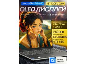 16" Ноутбук Lenovo IdeaPad Slim 5 Gen 10 (2025), 2.8K OLED, 130% sRGB, 120 Гц, Intel Core 5 220H (12 Ядер, 4.9 ГГц), RAM 64 ГБ LPDDR5, SSD 4 ТБ, Intel UHD Graphics, Windows 11 Pro + MS Office 2021 Pro Plus, Русская раскладка, Металл 4677596473