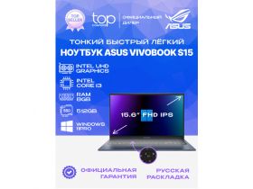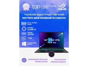 Ноутбук Asus VivoBook, 16, IPS, AMD Ryzen 7 7730U, DDR4 16ГБ, SSD 512ГБ, Vega 8, черный, Windows 11 Pro, металлическая крышка, русская раскладка клавиатуры 103253419160