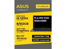 Ноутбук Asus Vivobook 17 17.3 IPS FHD i3-1215U 8ГБ 512ГБ UHD Graphics Синий Без ОС 4316360824