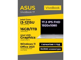 Ноутбук Asus Vivobook 17 17.3 IPS FHD i3-1215U 16ГБ 1ТБ UHD Graphics Серебристый Windows 11+Office 2021 4316409016
