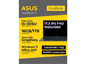 Ноутбук Asus Vivobook 17 17.3 IPS FHD i3-1315U 16ГБ 1ТБ UHD Graphics Синий Windows 11+Office 2021 4316409012