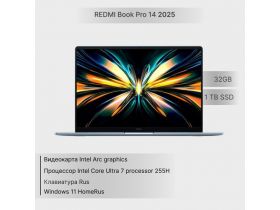 Ноутбук Xiaomi RedmiBook Pro 14 2025 Ultra 7 225H/32ГБ/1ТБ SSD/Intel Arc/Win11 HomeRus/клавиатура Rus/Голубой/JYU4654CN 4319389766