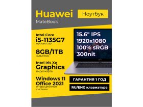 15.6" Ноутбук HUAWEI MateBook D 1553013GHA 1920x1080, Intel Core i5 1135G7 2.4 ГГц, RAM 8 ГБ, DDR4, SSD 256 ГБ, Intel UHD Graphics, Windows 11 Home, 53013GHA, космический серый 101849911743
