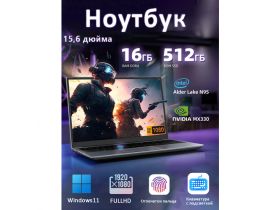 Игровой ноутбук "N95", 4-ядерный процессор, 16 Гб оперативной памяти, 512 Гб SSD, экран 15.6",Чёрный 4596579889