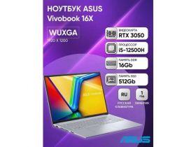 Ноутбук ASUS K3605ZC-N1154 16" WUXGA IPS 300N 120Hz/i5-12500H/16GB/512GB SSD/RTX 3050 4GB/DOS/Cool Silver/Русская раскладка 102409423019