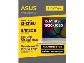 Ноутбук Asus Vivobook 15 15.6 IPS FHD i3-1215U 8ГБ 512ГБ UHD Graphics Серебристый Windows 11+Office 2021 4314120009