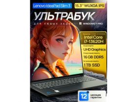 15.3" Ноутбук Lenovo IdeaPad Slim 3, Intel Core i5-13420H (3.3 ГГц), RAM 16 ГБ DDR5 SSD 512ГБ, Windows 11 Pro + Office 2021, Серый, Русская раскладка 4544059924