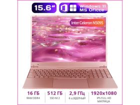 15,6" Ноутбук для работы и учебы, RAM 16 ГБ, SSD 512 ГБ , IPS Full HD 1920x1080, Intel N5095, Windows 11, Розовый золото 103713542740
