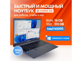 Ноутбук для работы 15.6", Intel Celeron N5095, RAM 16 ГБ, SSD 512 ГБ, Windows Home 103648778604