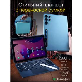 Найти - Планшет с клавиатурой 10.1 дюйма, планшет с сим картой, 6 GB RAM, 128 GB ROM, Android 12, 3000x1440, bluetooth, wifi, LTE, русская клавиатура, синий