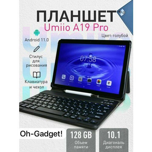 Найти - Планшет Umiio A19 Pro с клавиатурой, чехлом и стилусом, 6/128Гб, 10.1, Android 11.0, синий