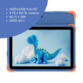 Защищённый планшет с усиленным корпусом и прорезиненными углами выдержит случайные удары и падения. Благодаря покрытию soft touch планшет не скользит в руках и приятен на ощупь. Стильный голубой корпус планшета для мальчиков радует и дарит чувство комфорта. В комплекте есть универсальная подставка — устройство можно поставить рядом и включить любимый мультик за обедом или во время игры.