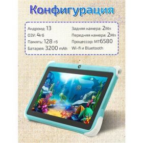 Детский планшет Smartbarry B91 PLUS, 7, Android, 4ГБ/128ГБ, родительский контроль, синий
