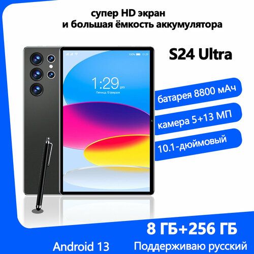 Найти - 10.1планшет S24 Ultra(2024), Русская версия,8 ГБ/256 ГБ, Android 13 /8800 мАч, магазин Google/play store/черное