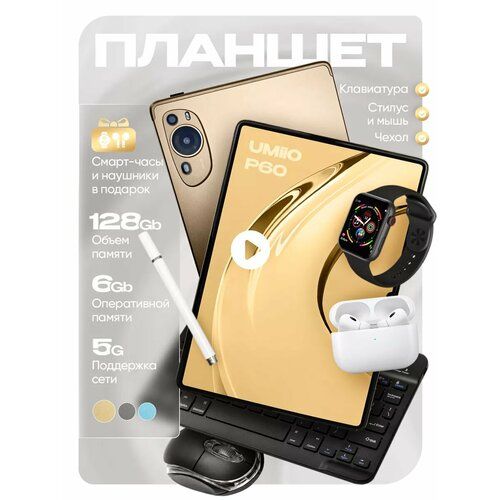 Найти - Планшет с клавиатурой Umiio P60 Pad детский для учебы Android 12 Gold