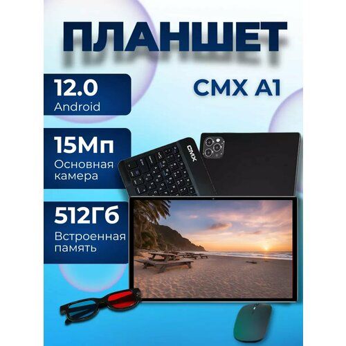 Найти - Планшет CMX A1 с клавиатурой, 10,1, 8GB, 512GB, Android 13, Черный