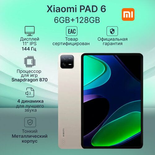 Найти - Планшет Xiaomi Pad 6 (2023), 6/128 ГБ, RU(EAC) Wi-Fi, Android 13, Сhampagne Gold, Золотой