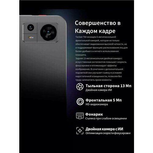 Планшет Teclast T60 - это идеальное решение для тех, кто хочет получить максимальную производительность и удобство использования. Этот планшет оснащен мощным процессором Unisoc Tiger T616 с 8 ядрами, что обеспечивает быструю работу приложений и игр. Также он имеет большой объем оперативной памяти - 8 ГБ, который позволяет запускать несколько программ одновременно без замедления работы устройства.