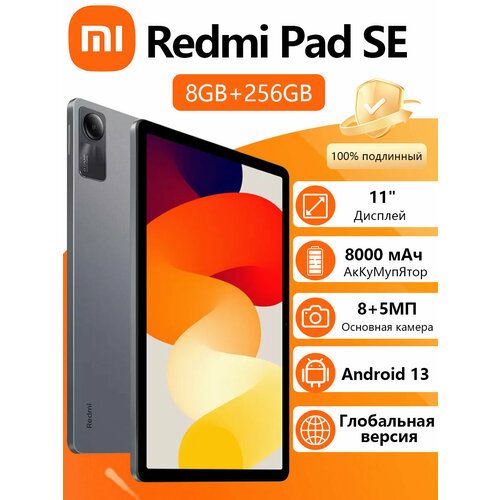 Найти - Планшет Xiaomi Redmi Pad SE 8/256 ГБ Wi Fi, глобальная версия, Серый, 11 , серый