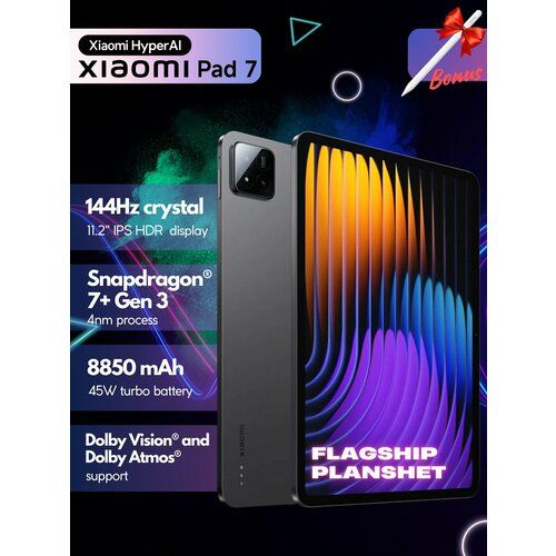 Найти - Планшет Xiaomi Pad 7, 11.2 IPS LCD дисплей, 144Гц, Snapdragon 7+ Gen 3, аккум 8850 мАч 45w, 8/256GB