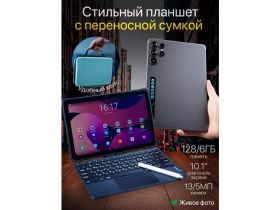 Планшет с клавиатурой 10.1 дюйма, планшет с сим картой, 6 GB RAM, 128 GB ROM, Android 12, 3000x1440, bluetooth, wifi, LTE, русская клавиатура, серый 103041656952