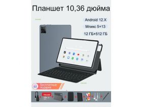 Планшет с клавиатурой и стилусом, Android 12, экран 10.36", 2 камеры, слот для карты памяти, серый 4428658798