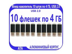 Флеш накопитель ATA, USB 2.0, 4ГБ, металлический корпус, чёрный, 10шт 103472137194