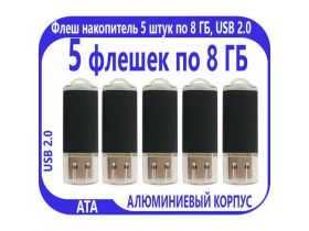 Комплект Флеш накопителей 8 Гб, корпус металл (5 штук) 102682597176