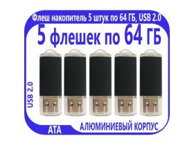 Флеш-накопители ATA, ударопрочный металлический корпус, 64ГБ, чёрные, комплект 5шт 4349409903