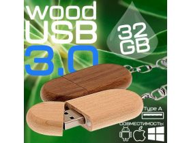 Овальная деревянная флешка с магнитным колпачком (32 Гб / GB USB 3.0 Красный/Red Wood1 Flash drive Овальная с Карабином WD147) 101392892033