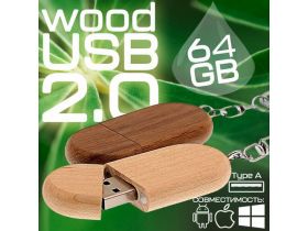 Овальная деревянная флешка с магнитным колпачком (64 Гб / GB USB 2.0 Белый/White Wood1 флеш накопитель apexto UW-0026) 101392881311
