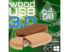 Овальная деревянная флешка с магнитным колпачком (64 Гб / GB USB 3.0 Белый/White Wood1 Flash drive Верона Овал "Verona Oval" F17) 101392878433