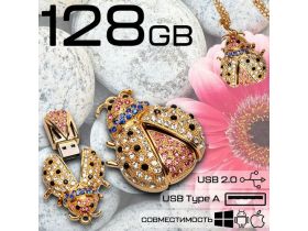 Металлическая флешка со стразами "Жук" (128 Гб / GB USB 2.0 Золотой/Gold ZHUK Недорогой и креативный подарок на 14 февраля с парными фото) 101666689942