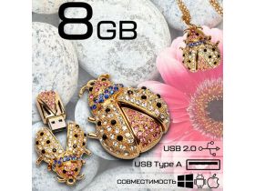 Металлическая флешка со стразами "Жук" (8 Гб / GB USB 2.0 Золотой/Gold ZHUK Романтичный подарок жене на 14 февраля от любимого мужа) 101666689193