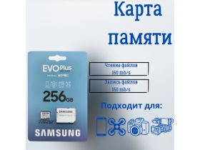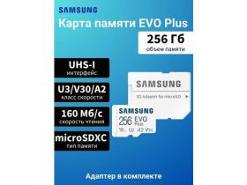 Карта памяти microSDXC 256Gb Samsung EVO Plus UHS-I U3 A2 + ADP 160 Mb/s NEW 4697954407