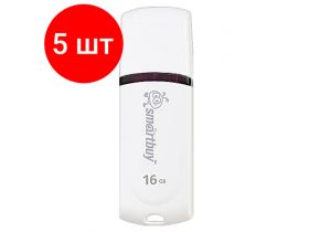 Комплект 5 шт, Флеш-диск 16 GB, SMARTBUY Paean, USB 2.0, белый, SB16GBPN-W 101920527024