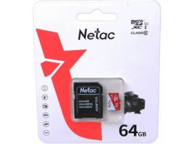 Карта памяти Netac microSDXC 64 ГБ Class 10, V30, UHS-I U1, R/W 30/15 МБ/с, адаптер на SD, RU, 1 шт., черный/красный 103140245735