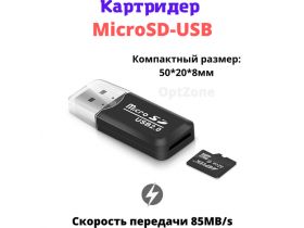 Картридер MicroSD/MicroSDHC USB 2.0 - быстрый обмен данными, без драйверов, удобный, надежный 102046247340