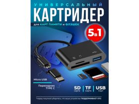 Картридер 5 в 1 универсальный USB Type C Micro USB, устройство для чтения SD-карт памяти, U-диск, OTG адаптер, конвертер для планшетов 102034587574