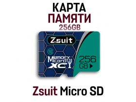 Карта памяти Zsuit 256 GB Micro SD (SDXC) Class 10, без адаптера, синий 103145021423