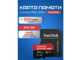 Карта памяти SanDisk 512GB Extreme Pro MicroSDXC 200/140MB/s + SD-адаптер (SDSQXCD-512G-GN6MA) 4436694722