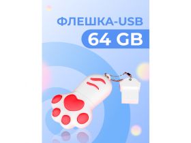 USB Флешка Pastila 64 GB для файлов и музыки / USB Flash накопитель / Подарочная ЮСБ флеш пямять для ноутбука, телевизора / Лапка белая 102762986646