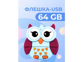 USB Флешка Pastila 64 GB для файлов и музыки / USB Flash накопитель / Подарочная ЮСБ флеш пямять для ноутбука, телевизора / Сова голубая 102580765689