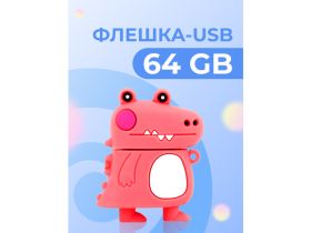 USB Флешка Pastila 64 GB для файлов и музыки / USB Flash накопитель / Подарочная ЮСБ флеш пямять для ноутбука, телевизора / Динозавр розовый 102580765690