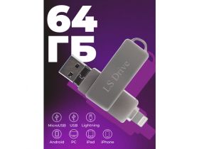 Металлическая флешка 64 гб, 3в1 Lightning, Type-C, USB флешка для компьютера, ноутбука и телефона, флеш накопитель 4487409230