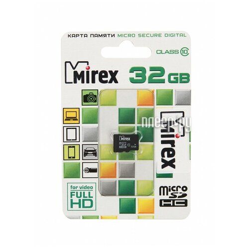 Найти - Карта памяти Mirex microSDHC 32GB Class 10 R/W 25/10 МБ/с (13612-MC10SD32)